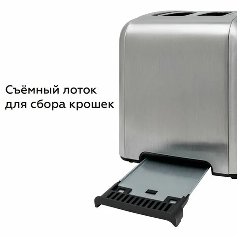 Съемный поддон для крошек значительно упрощает уход за устройством. Он легко выдвигается и очищается.