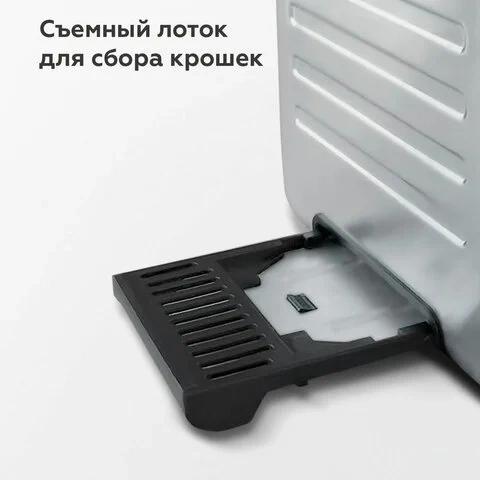 Кроме того, данный тостер из нержавейки снабжен съемным поддоном для крошек, который обеспечивает безопасность и облегчает уход. Поддон легко выдвигается и очищается.