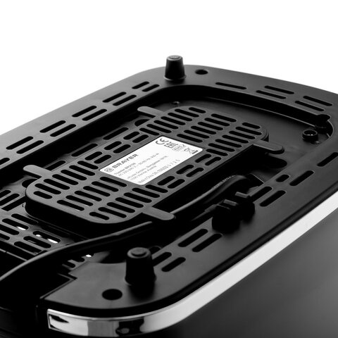 Корпус устройства выполнен из прочного пластика и оснащен нескользящими ножками. Для управления на нем предусмотрен поворотный регулятор и кнопки с подсветкой. Облегчить уход за тостером помогает поддон для крошек, который вынимается для очистки.