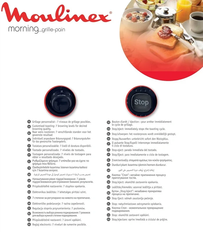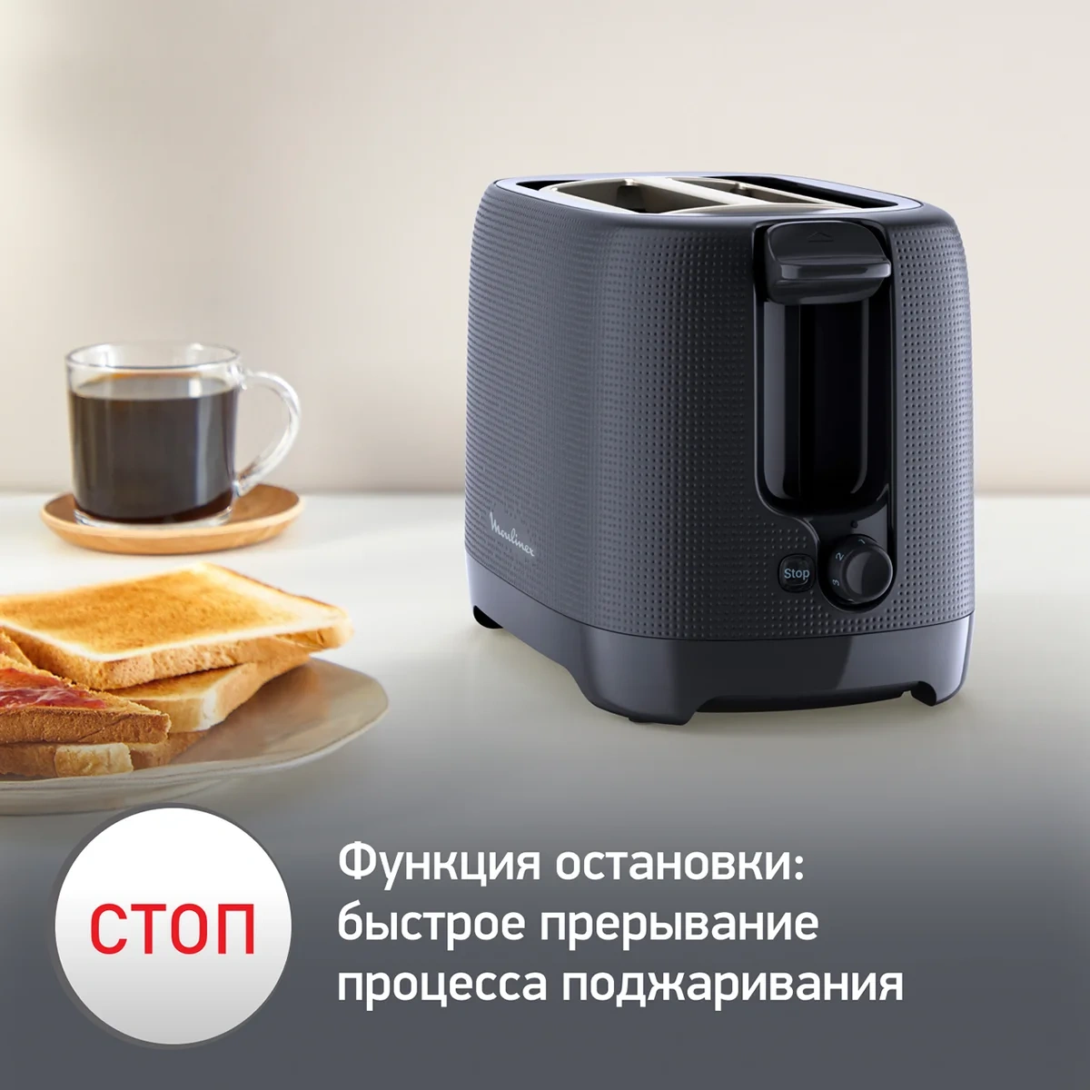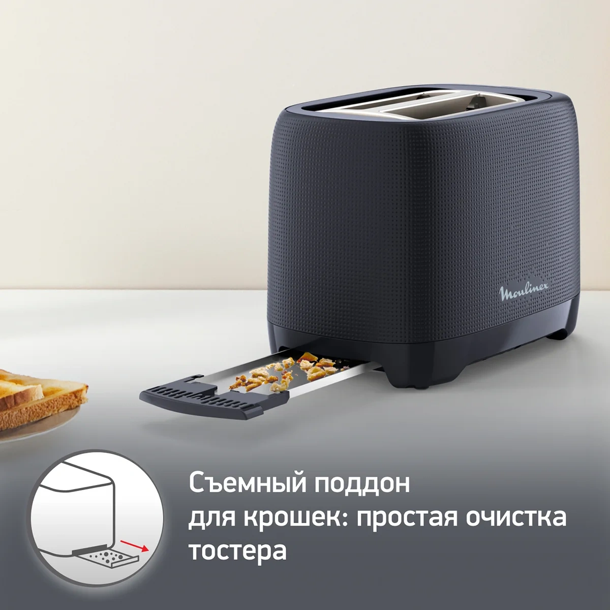 Сделайте каждое утро особенным вместе с тостером Morning от Moulinex с двумя отделениями. Его минималистичный, но при этом запоминающийся дизайн идеально дополнит интерьер любой кухни. Выбирайте любой из 7 уровней подрумянивания на свой вкус, а функция Стоп гарантирует, что вы получите именно ту корочку, которую любите больше всего. Высокое поднятие позволяет удобно поджаривать и доставать даже небольшие тосты, а широкие отделения легко вместят большие ломтики хлеба. Наслаждайтесь приятным хрустом и не думайте про уборку - тостер оснащен удобным съемным лотком для крошек.