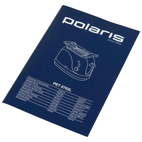 Тостер POLARIS PET 0702L, 750 Вт, 2 тоста, 6 режимов, механическое управление, пластик, белый, 03277