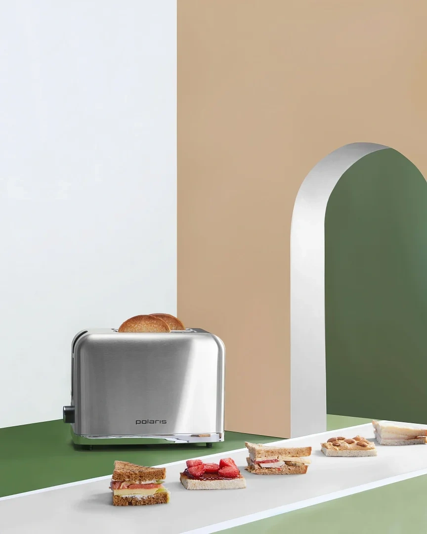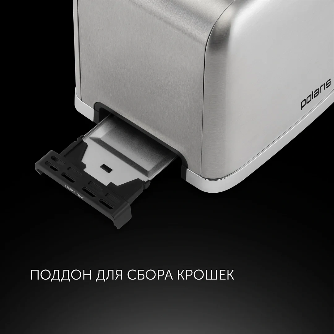 Тостер Polaris PET 0923 имеет мощность в 930 Вт и электронное управление. В нем предусмотрено два отделения для тостов. Всего представлено 7 степеней обжарки, что позволит с легкостью выбрать свой вариант. Функция автоцентрирования тостов обеспечивает равномерное прожаривание хлеба. К другим особенностям тостера можно отнести функции подогрева и размораживания. Здесь также есть выдвижной лоток, куда собираются хлебные крошки. Предусмотрена возможность подогрева уже готовых тостов. При работе тостера корпус не нагревается. В нем предусмотрен отсек для хранения сетевого шнура.