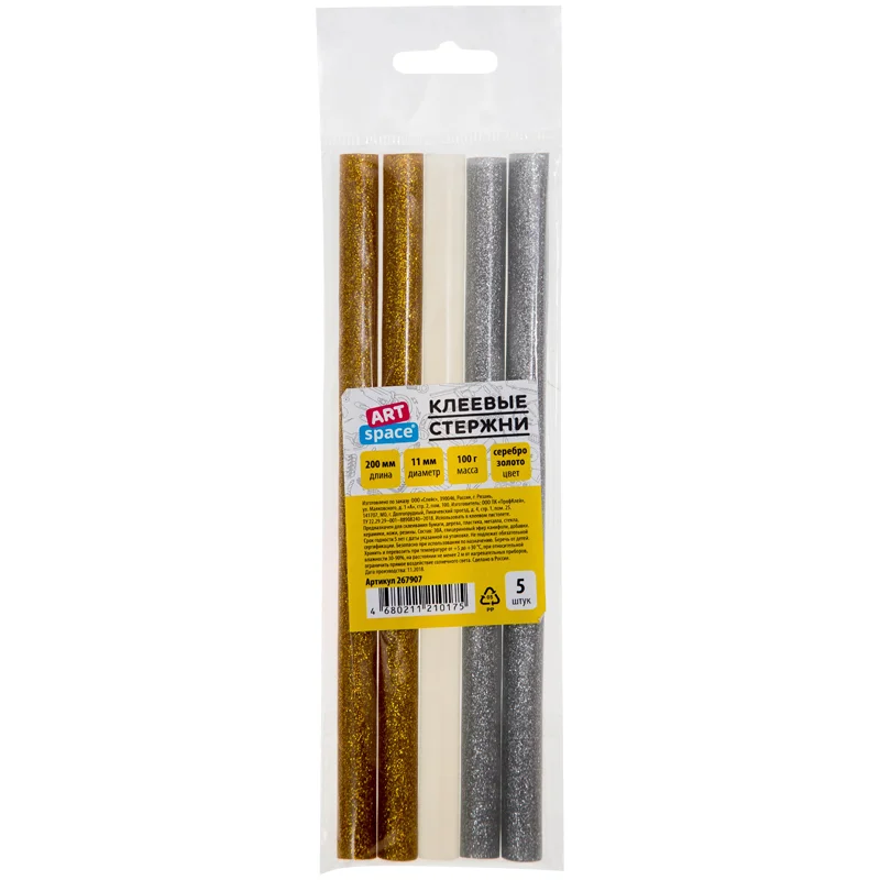 Клеевой стержень Artspace золотой/серебряный/прозрачный, d=11мм, 5шт, 200мм