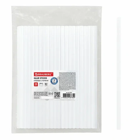 Клеевые стержни, диаметр 7 мм, длина 200 мм, прозрач, 0,5 кг (58 шт.) BRAUBERG, 671054