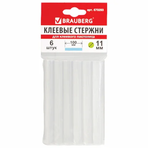 Клеевой стержень Brauberg белый, d=11мм, 100мм, 6шт