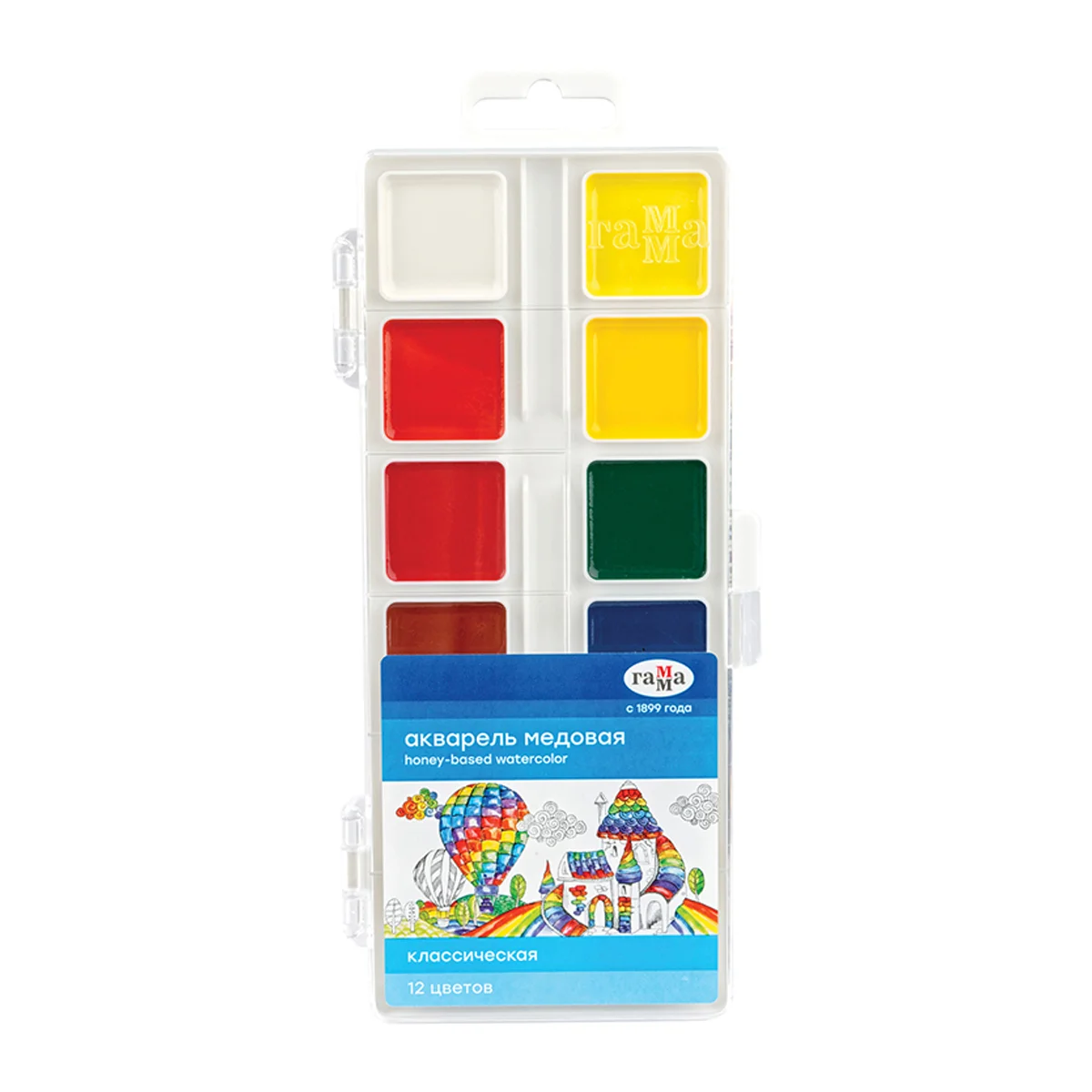 Акварель Гамма 'Классическая', медовая, 12 цветов, без кисти, пластик. упак., европодвес NEW
