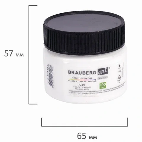 Гуашь художественная 1 шт., BRAUBERG ART CLASSIC, баночка 100 мл, БЕЛИЛА ТИТАНОВЫЕ, 191582