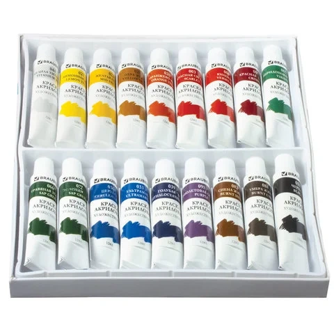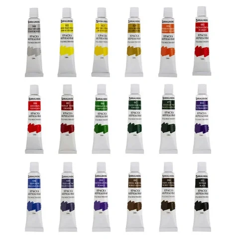 Краска акриловая художественная Brauberg 18 цветов по 12мл, в тубах