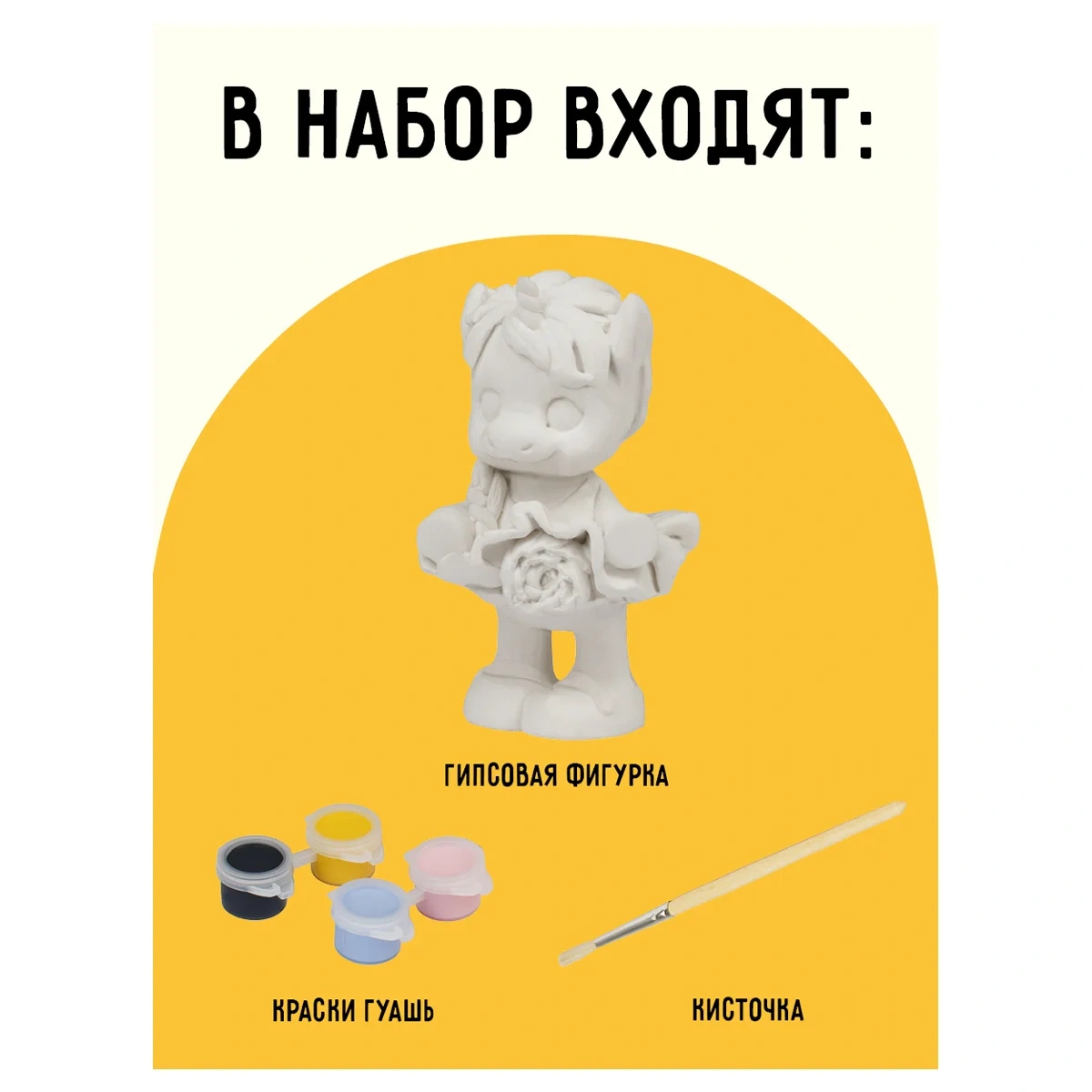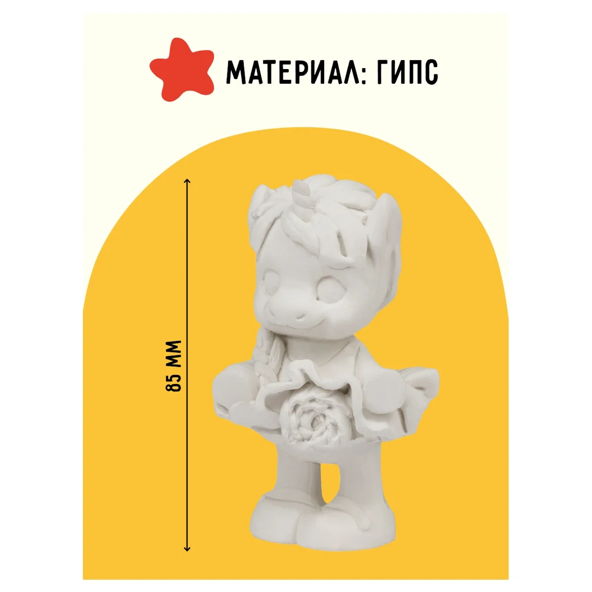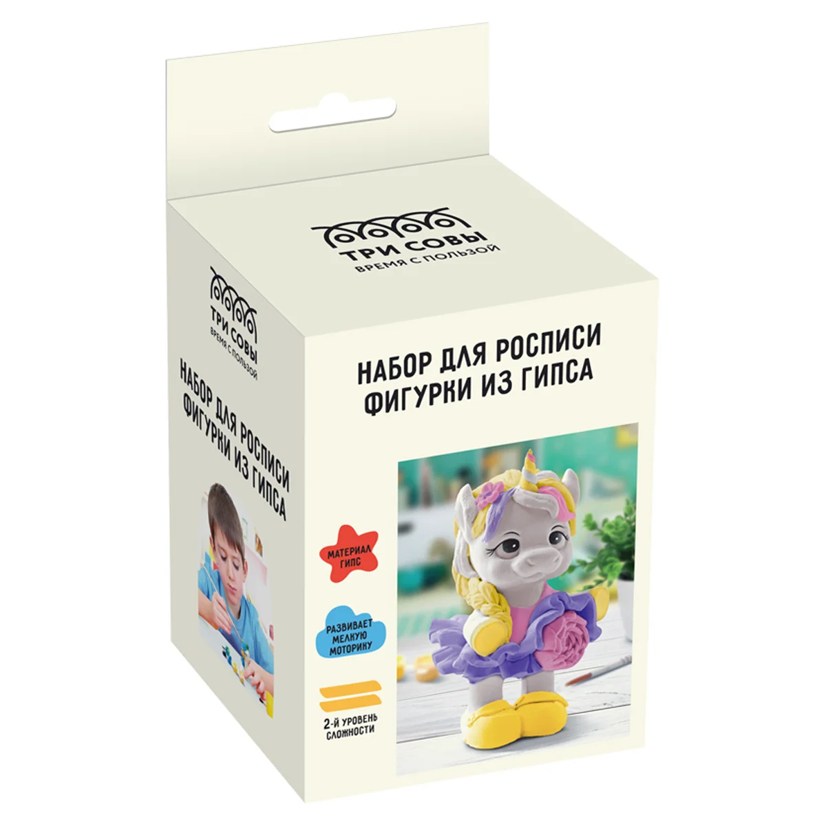 Набор для росписи из гипса ТРИ СОВЫ 'Единорог', высота фигурки 8,5см, с красками и кистью, картонная