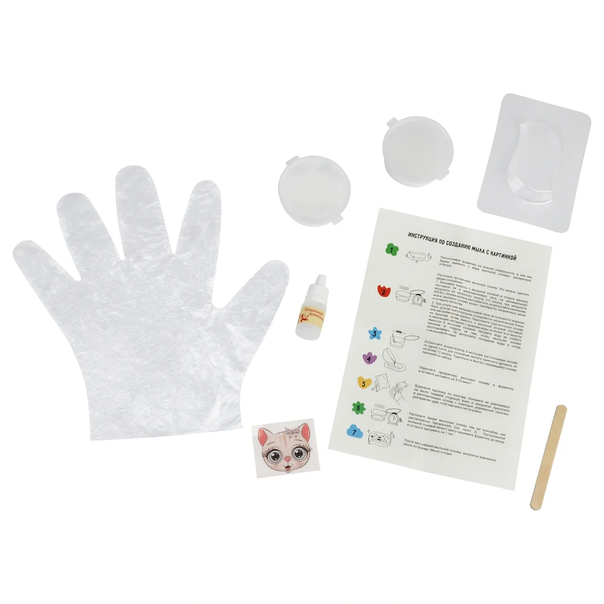 Набор для мыловарения ТРИ СОВЫ 'Кошечка', 1 мыло с картинкой, картонная коробка