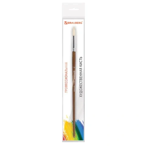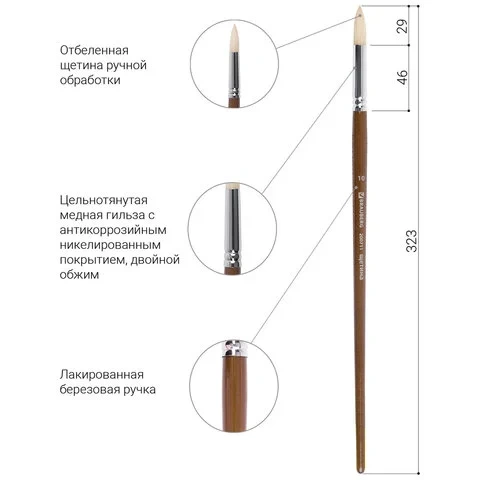 Кисть художественная профессиональная BRAUBERG ART 'CLASSIC', щетина, круглая, № 10, длинная ручка,