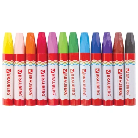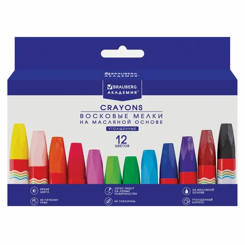 Восковые мелки утолщенные BRAUBERG 'АКАДЕМИЯ', НАБОР 12 цветов, на масляной основе, яркие цвета, 227