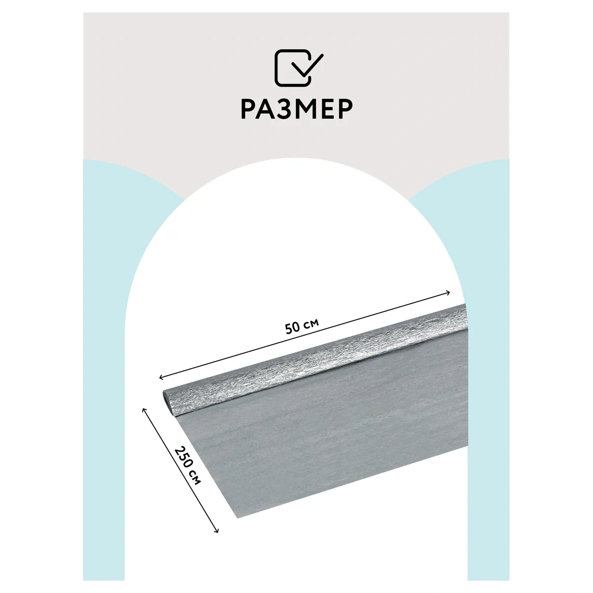 Бумага крепированная ТРИ СОВЫ, 50*250см, 22г/м2, серебряная, в рулоне, пакет с европодвесом