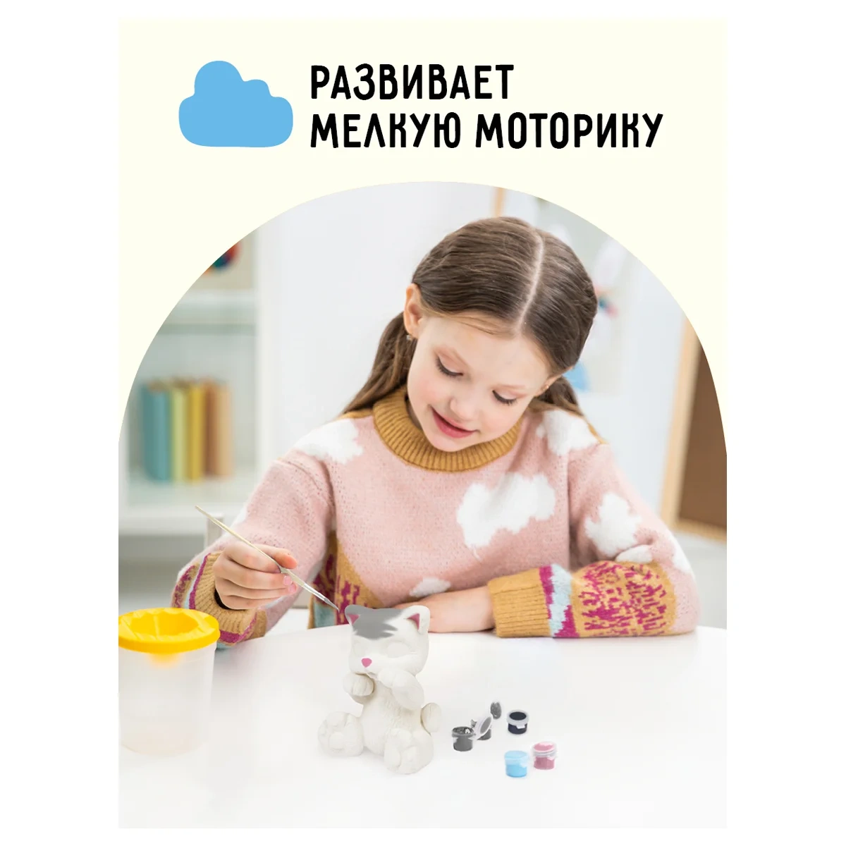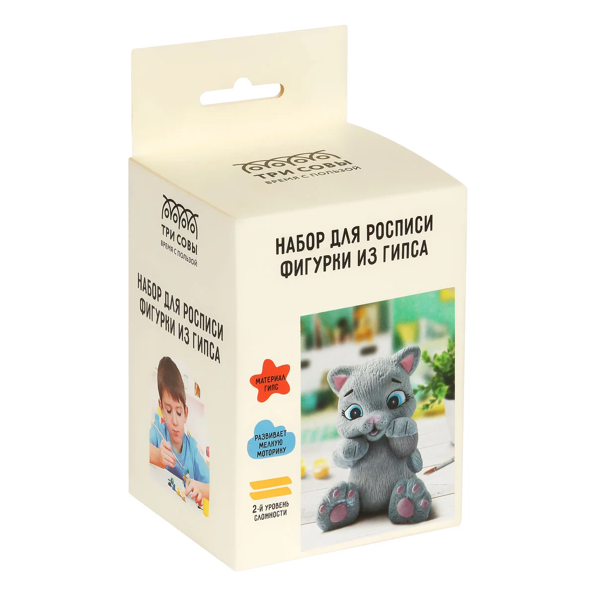 Набор для росписи из гипса ТРИ СОВЫ 'Котенок', высота фигурки 8,5см, с красками и кистью, картонная