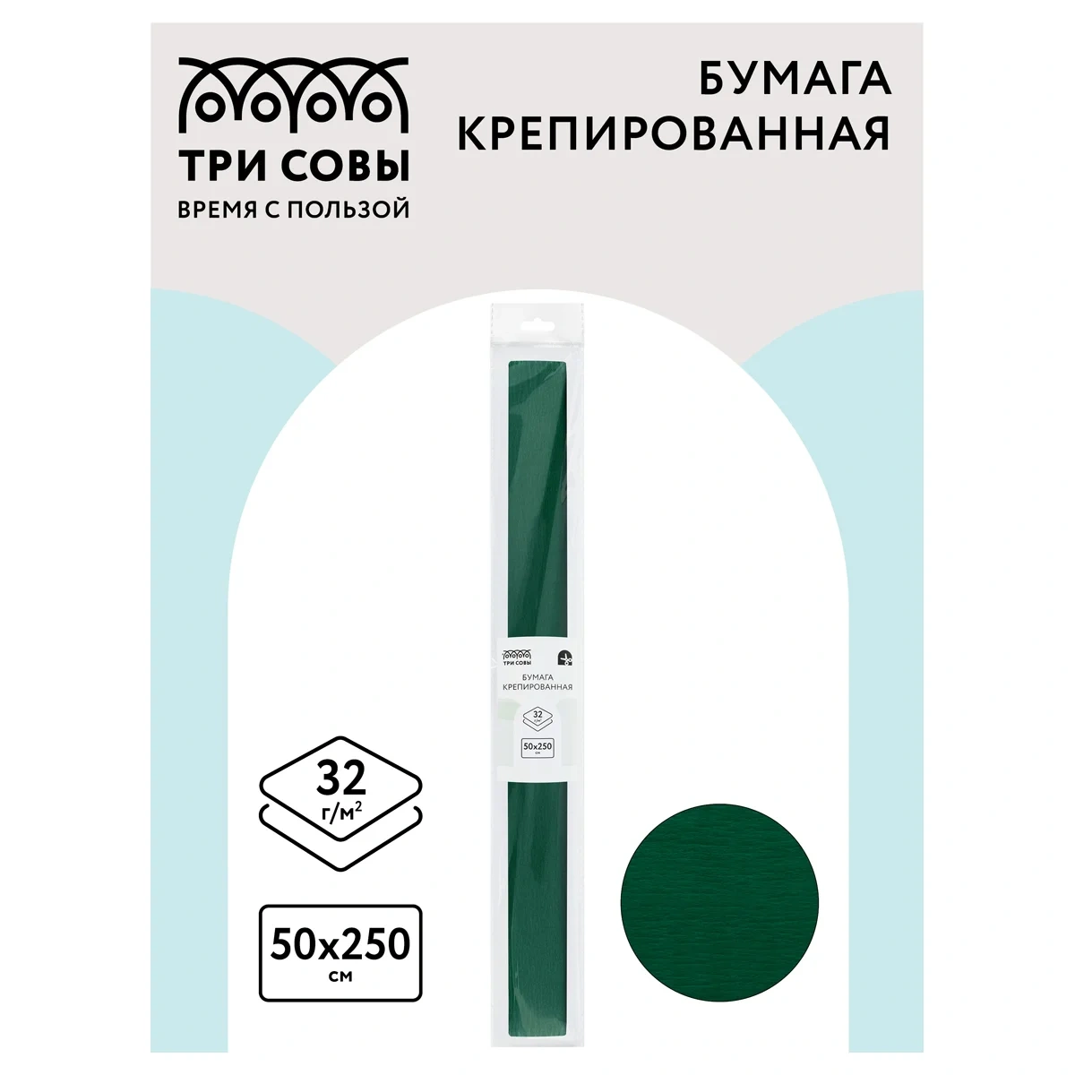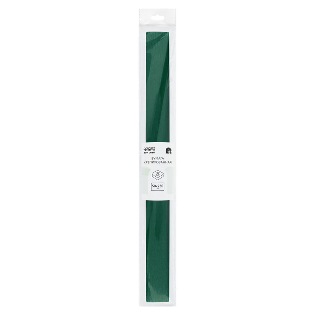 Бумага крепированная ТРИ СОВЫ, 50*250см, 32г/м2, темно-зеленая, в рулоне, пакет с европодвесом