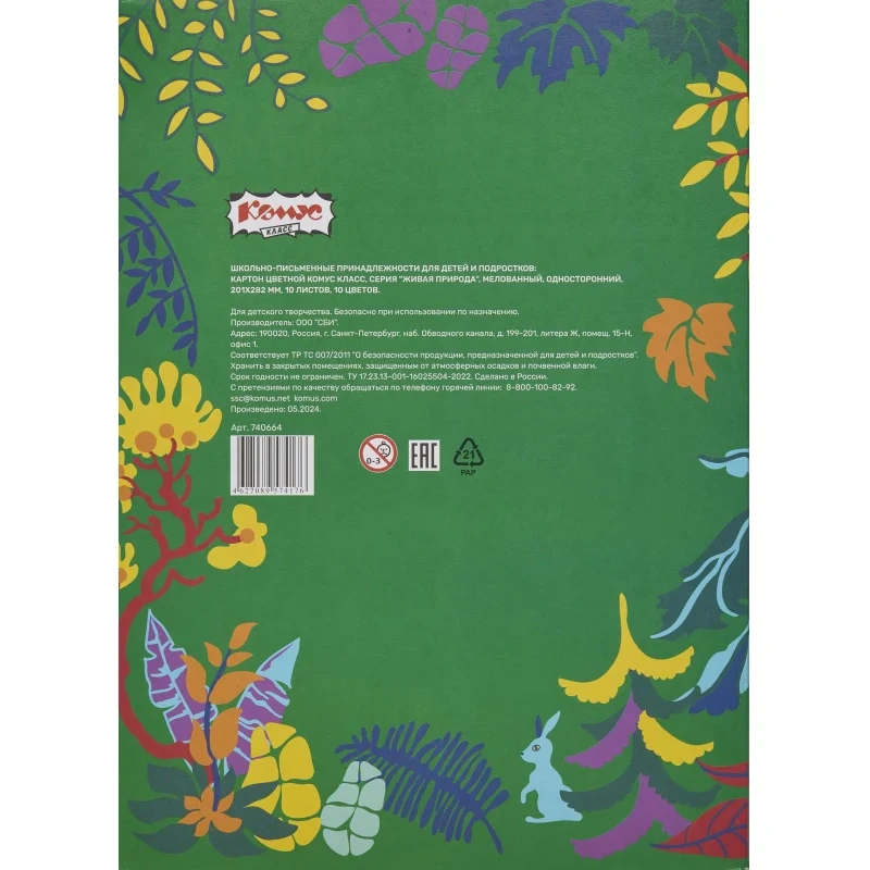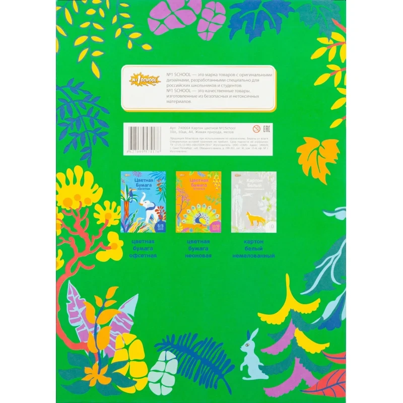 Цветной картон №1 School Живая природа 10 цветов, А4, 10 листов, мелованный