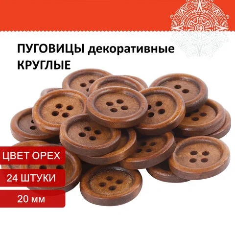 Пуговицы декоративные 'Круглые', дерево, цвет орех, 20 мм, 24 шт., ОСТРОВ СОКРОВИЩ, 661409