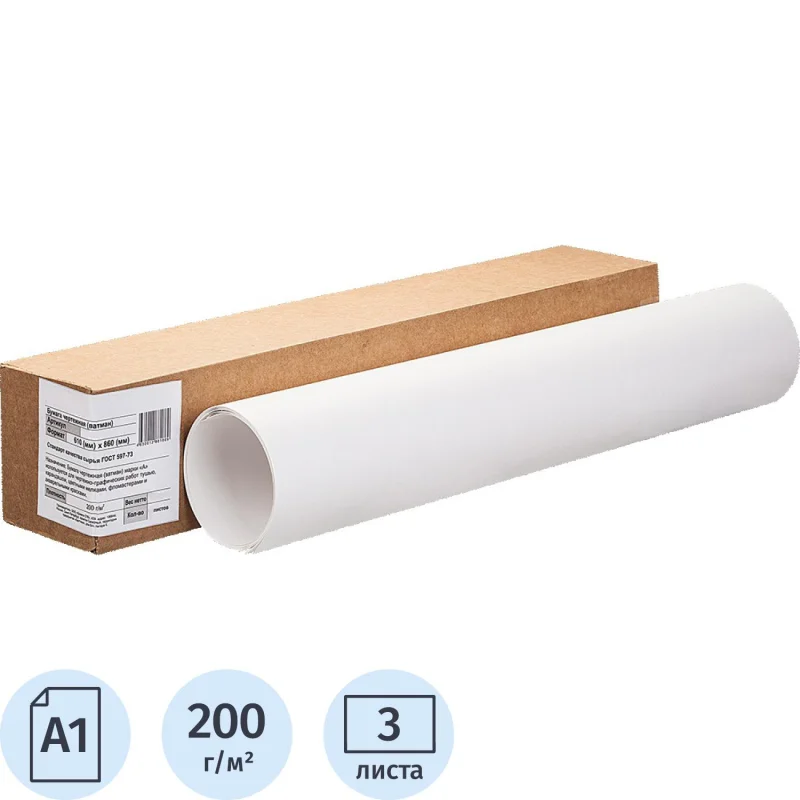 Ватман (бумага чертежная) 610х860мм 200г КБФГ 3л/уп, тубус 100х100х710мм