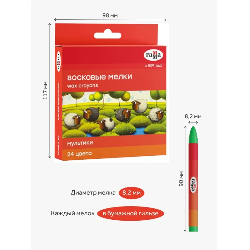 Мелки восковые Гамма 'Мультики', 24цв., круглые, картон. упаковка, европодвес