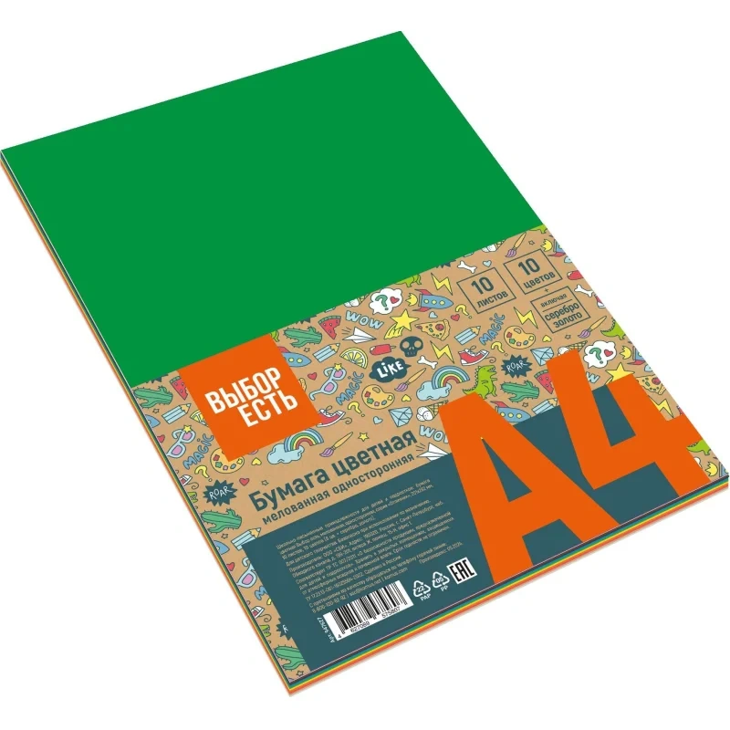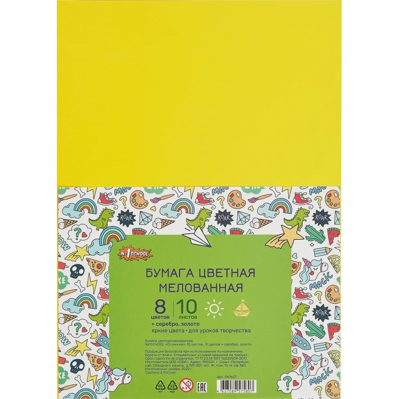 Бумага цветная №1School 10л.10цв.А4 мелован(золото+сереб) Отличник