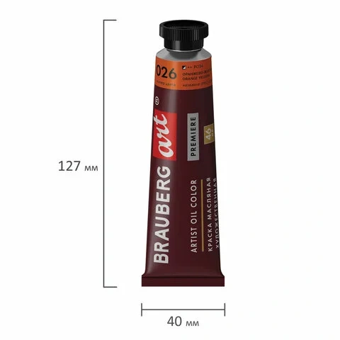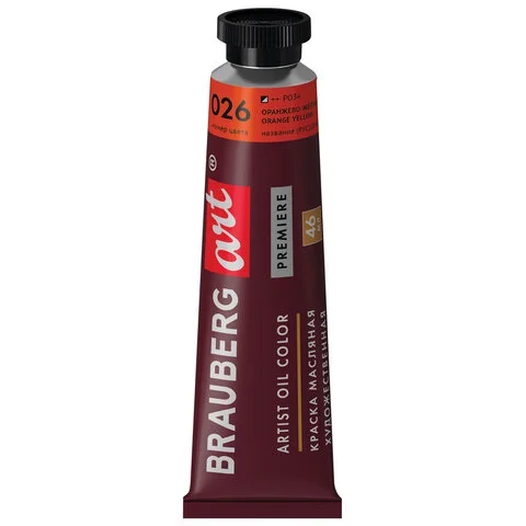 Краска масляная художественная BRAUBERG ART PREMIERE, 46 мл, профессиональная серия, ОРАНЖЕВО-ЖЕЛТАЯ