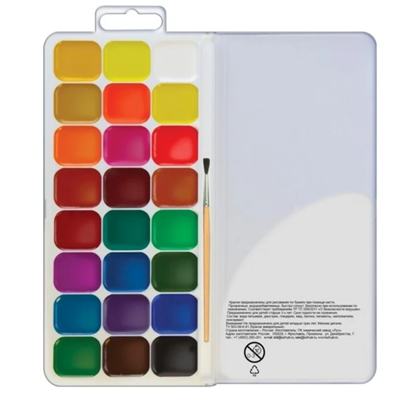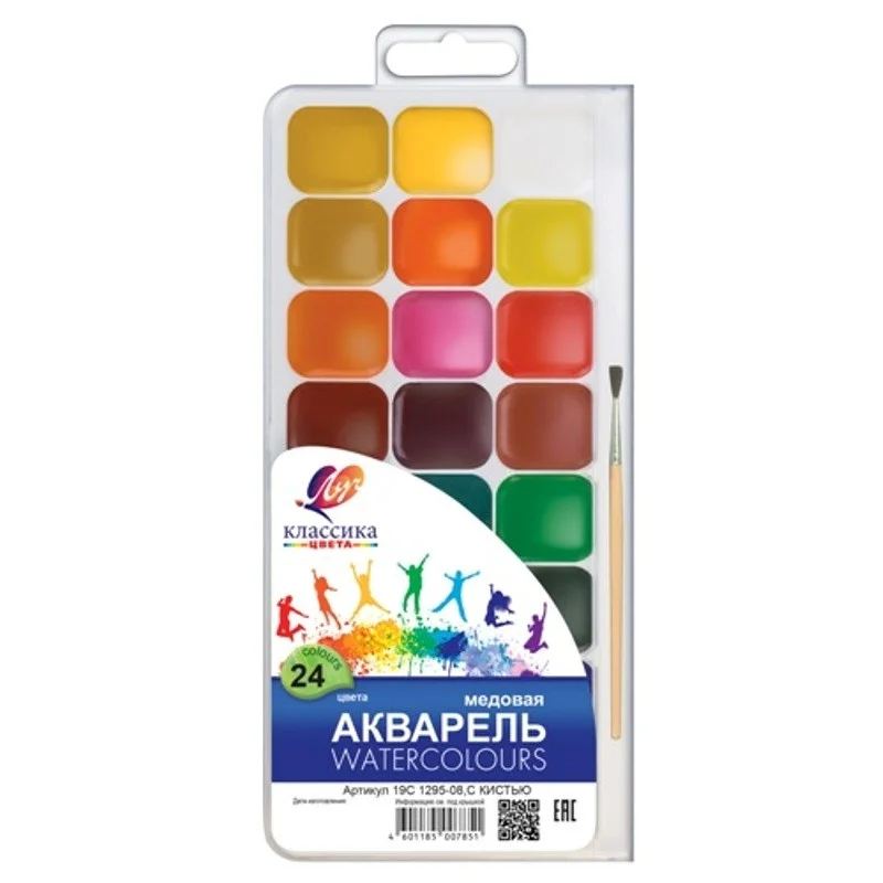 Акварель Луч Классика 24 цвета, медовые, с кистью