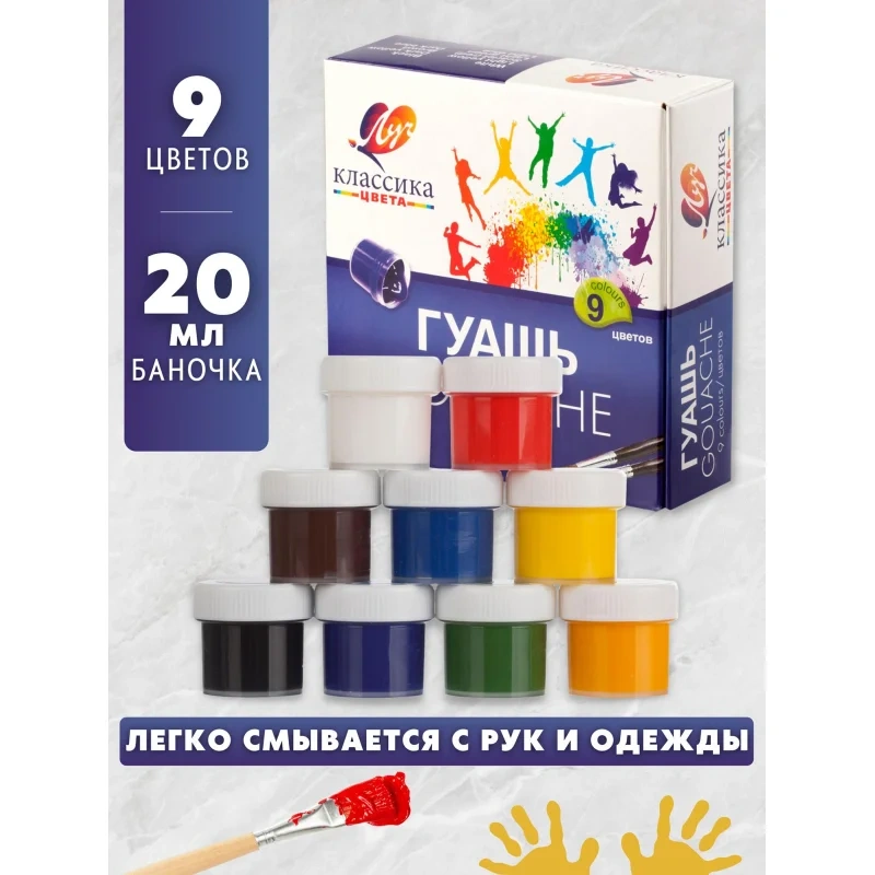 Гуашь Луч Классика 12 цветов по 20мл, блок-тара