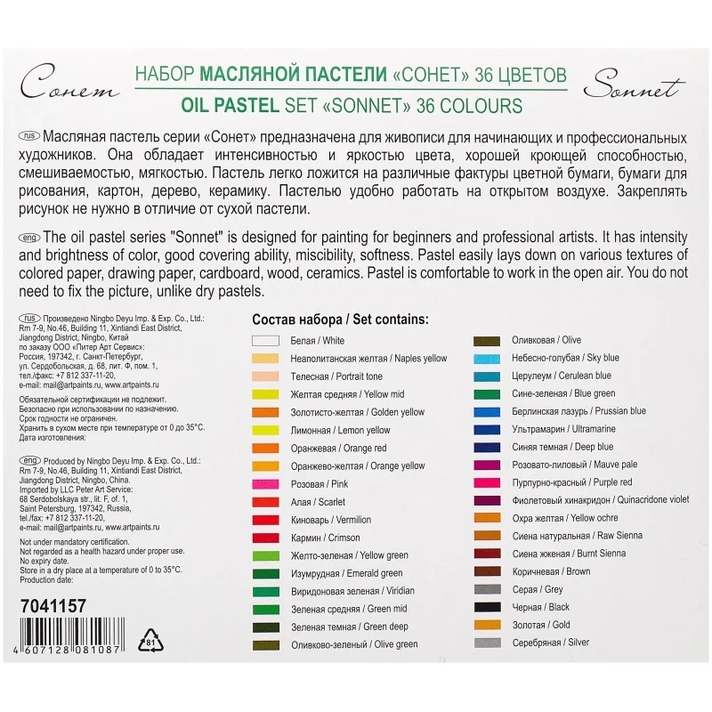 Пастель художественная Невская Палитра Сонет 36 цветов, масляная