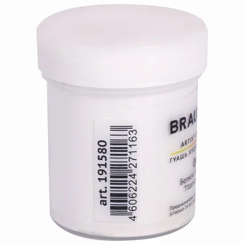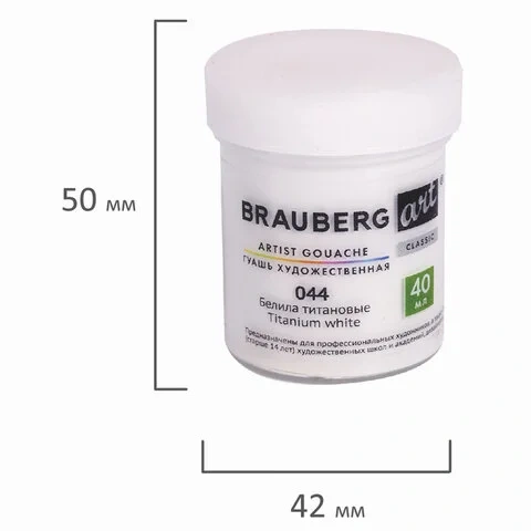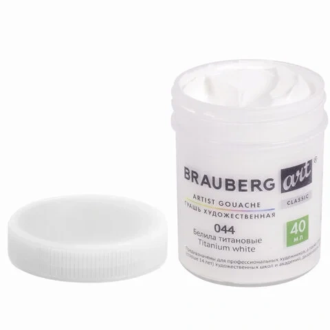 Гуашь художественная 1 шт., BRAUBERG ART CLASSIC, баночка 40 мл, БЕЛИЛА ТИТАНОВЫЕ, 191580