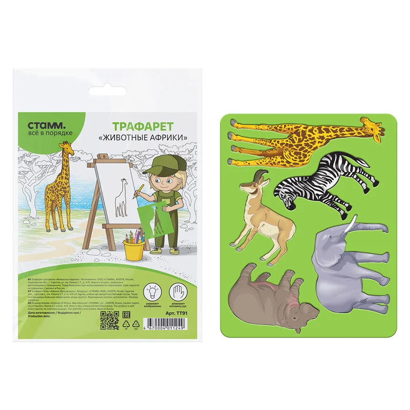 Трафарет-раскраска Стамм Животные Африки, 19.5х12.2см