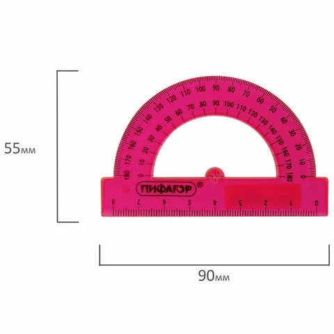 Транспортир 8 см, 180 градусов, ПИФАГОР, прозрачный, неоновый, ассорти, 210792