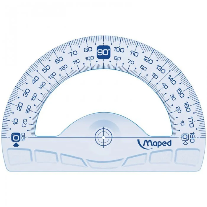 Транспортир Maped GEOMETRIC, 180. Эргономичный дизайн, высококачественная маркировка: нанесена с использованием УФ-чернил для лучшей устойчивости. Основание 12см. Четко выделенный центр, указатель направлений чтения маркировок. Прозрачный пластик. Блистерная упаковка с подвесом.