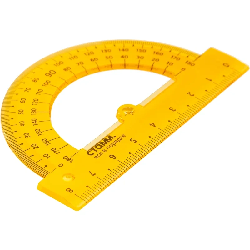 Транспортир Стамм 180°, основание 8см, тонированный,ассорти, ТР01