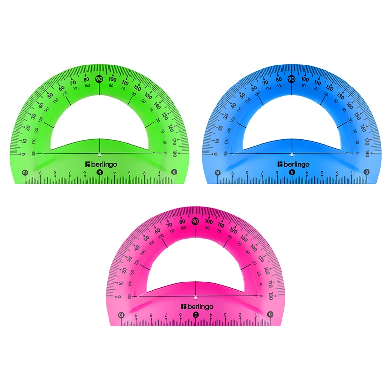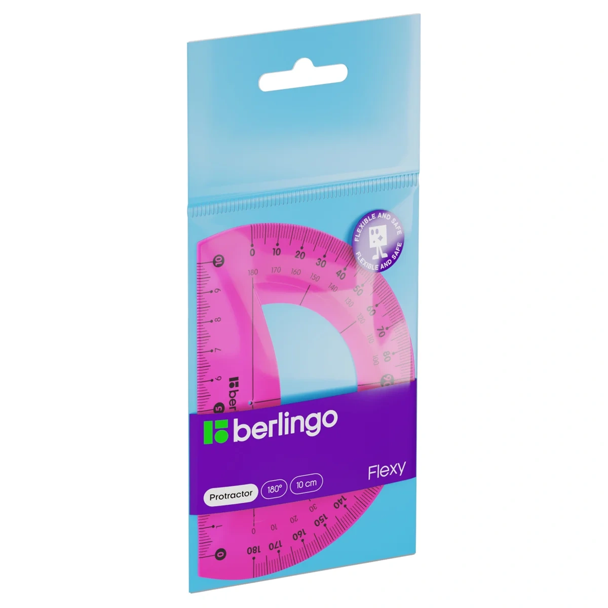 Транспортир Berlingo Flexy 180°, основание 10см, ассорти
