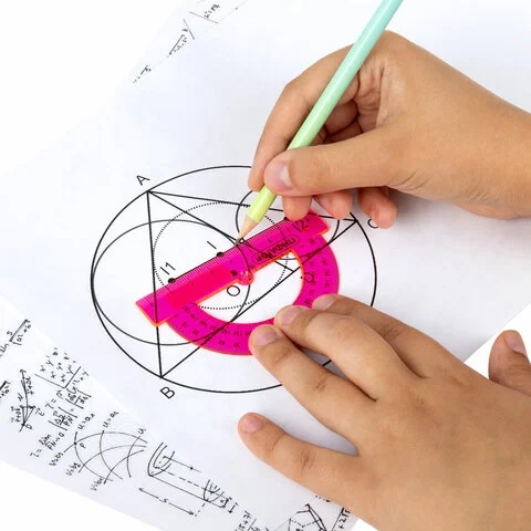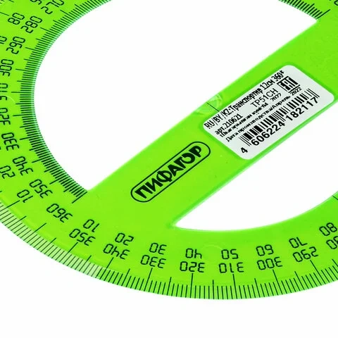 Транспортир 12 см, 360 градусов, ПИФАГОР, прозрачный, неоновый, ассорти, 210621