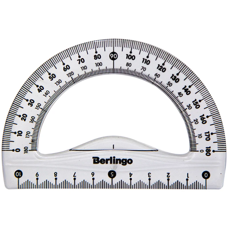 Транспортир Berlingo Spike 180°, основание 10см, прозрачный