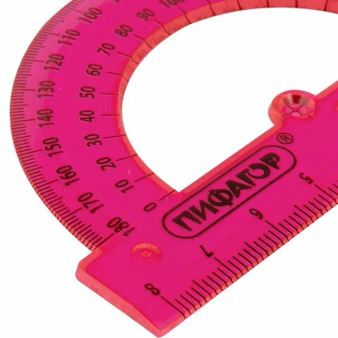 Транспортир 8 см, 180 градусов, ПИФАГОР, прозрачный, неоновый, ассорти, 210792