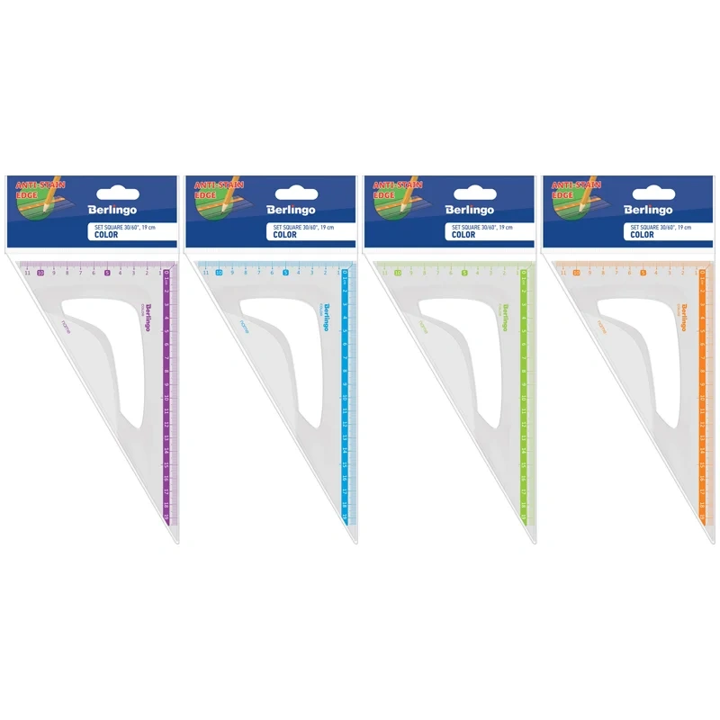 Треугольник пластиковый, 30/60°, 19 см, безопасные закругленные края, высококачественная градуировка с использованием УФ-чернил. Индивидуальная упаковка в пакет с европодвесом.