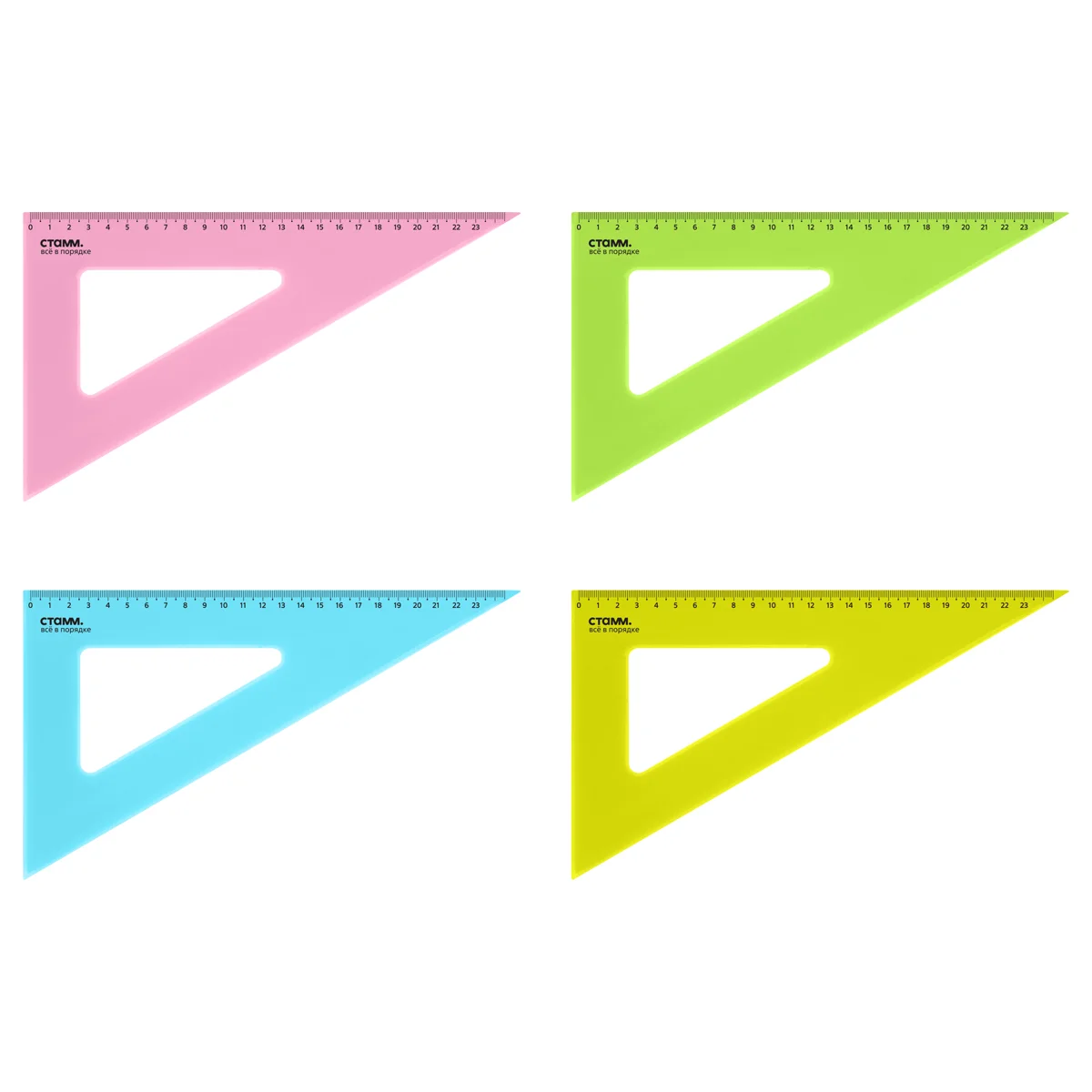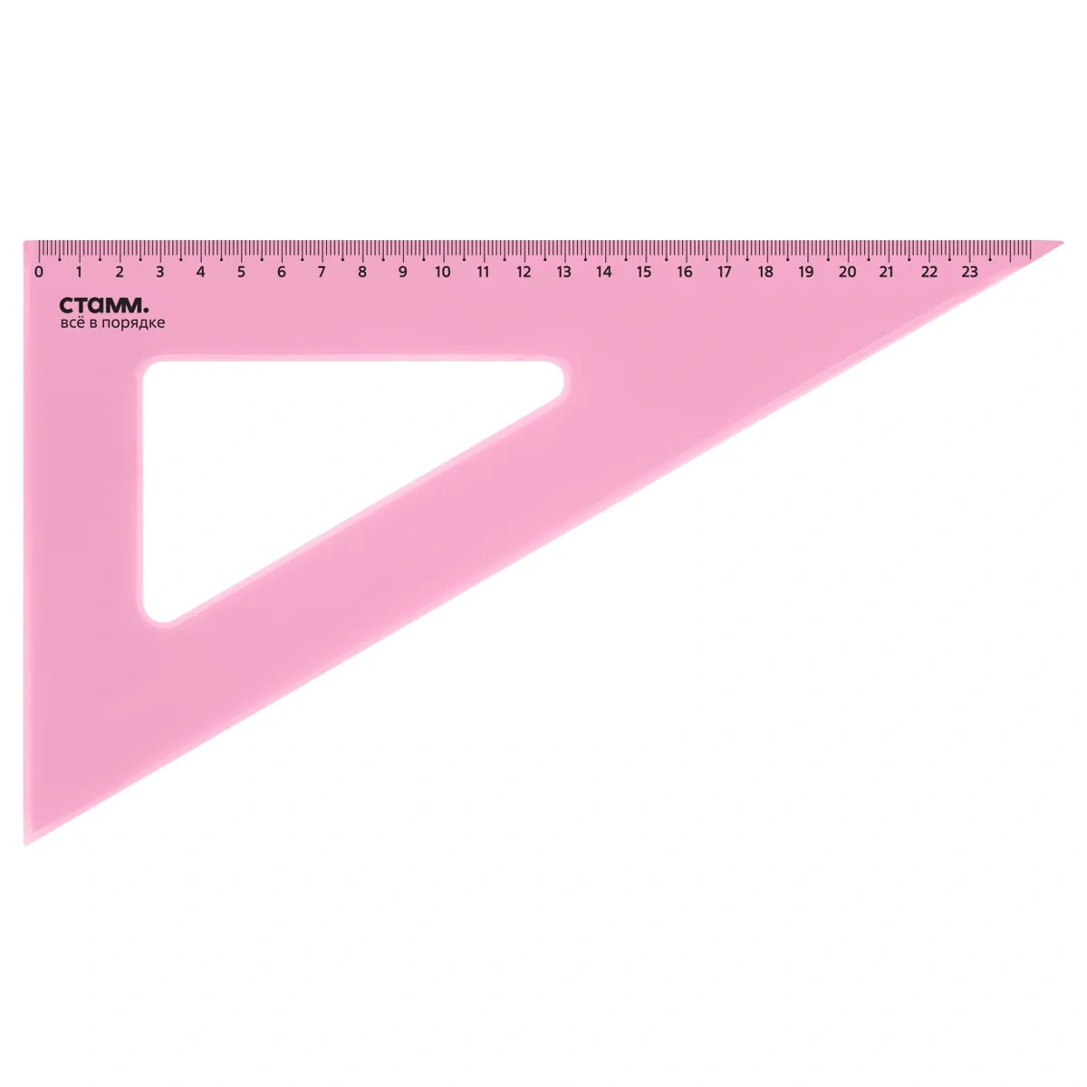 Треугольник 30°, 23см СТАММ, пластиковый, прозрачный, неоновые цвета, ассорти