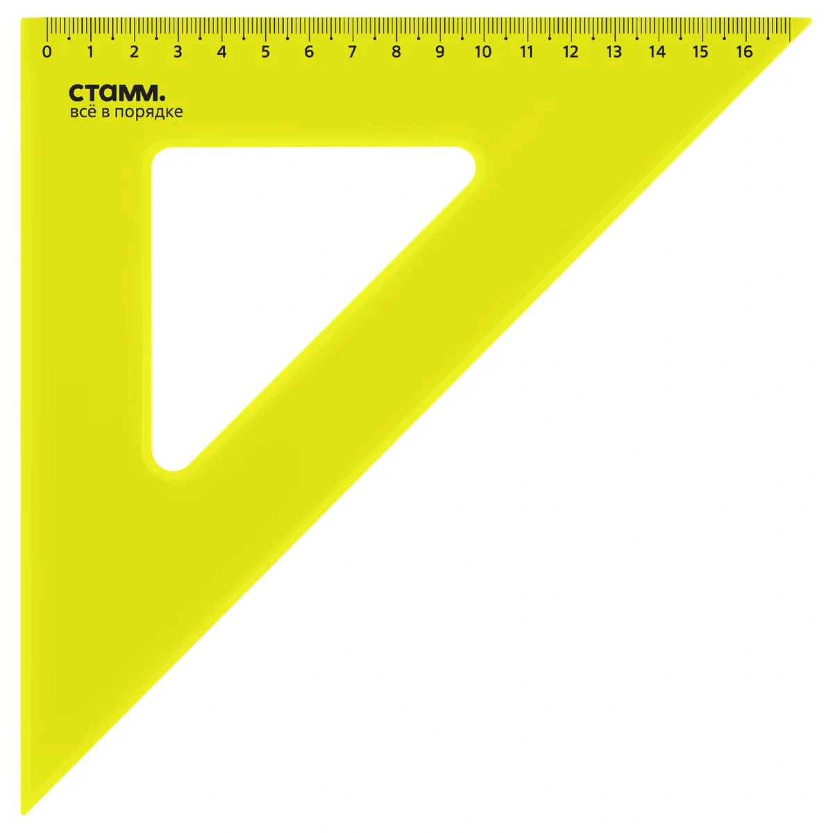 Треугольник 45°, 16см СТАММ, пластиковый, прозрачный, неоновые цвета, ассорти