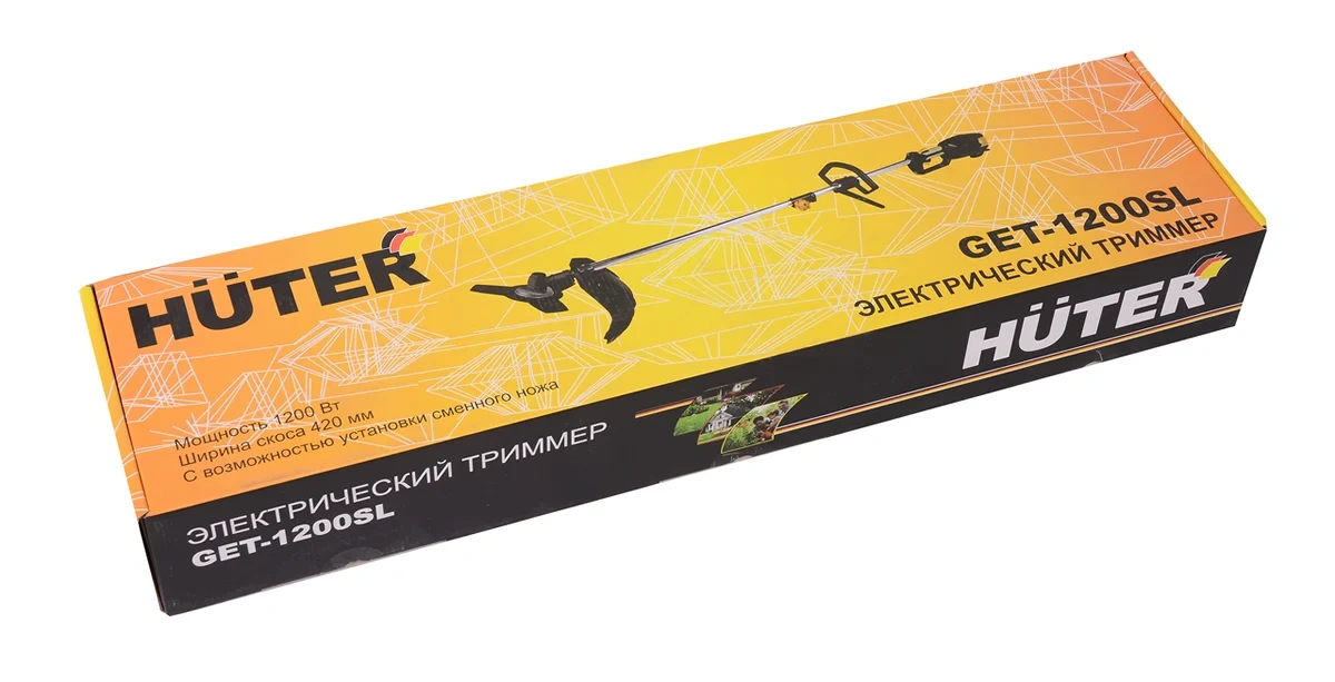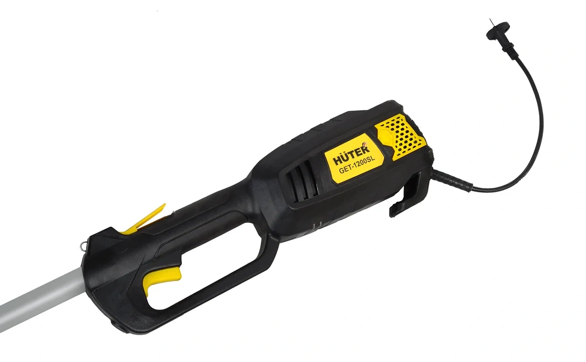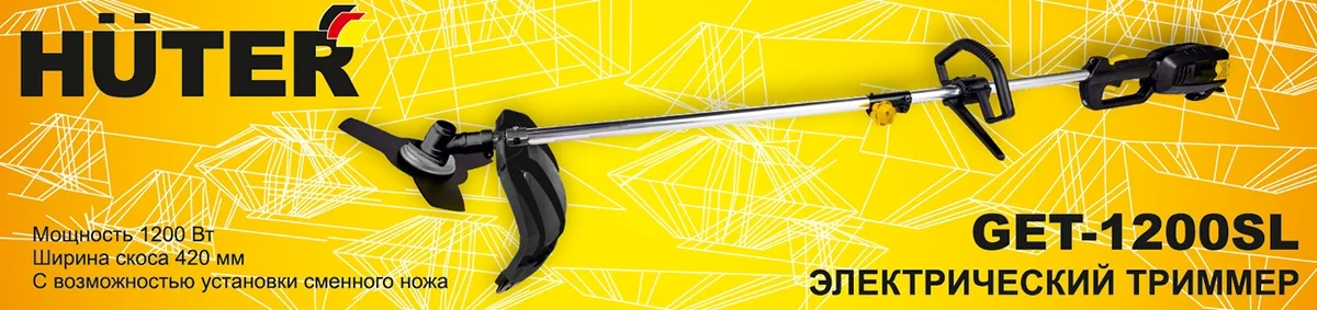 Электрический триммер GET-1200SL Huter. Подключается электрокоса Хутер в обычную электросеть 220 вольт. Двигатель находится в верхней части косы. Режущий инструмент - леска 2 мм и стальной нож. Ширина захвата - 250/350мм. Штанга прямая с редуктором, разъемная, электротриммер удобный в перевозке и хранении. Наплечный ремень снимает нагрузку с рук и равномерно распределяет вес электрокосы. Заказать недорогой электротриммер Huter GET-1200SL стоит для загородного дома, дачи, стрижки простого, естественного газона, многолетних сорняков и высокого сухостоя на полях.