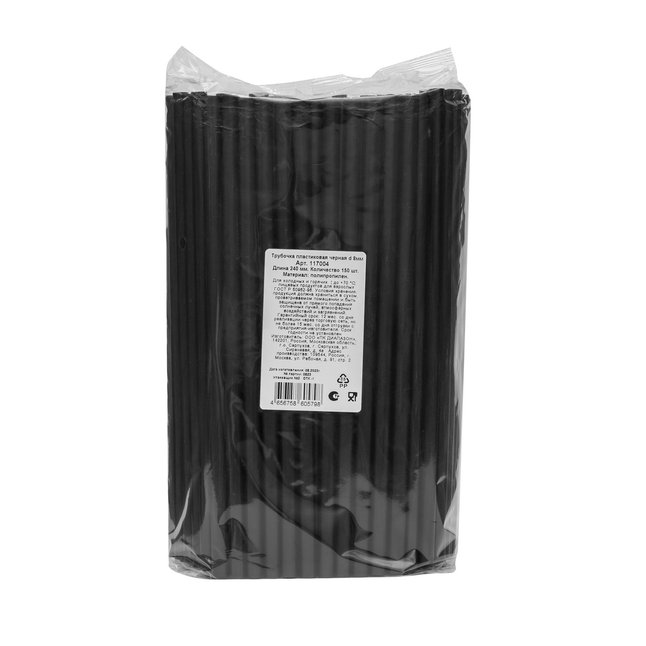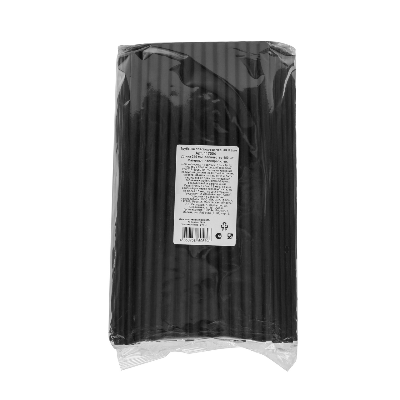 Трубочка для коктейля одноразовая пластиковая черная 24см, 150шт