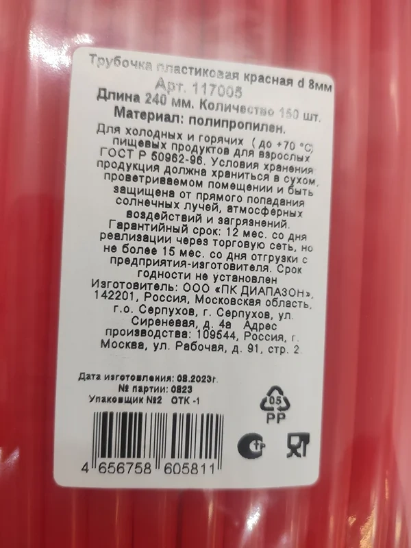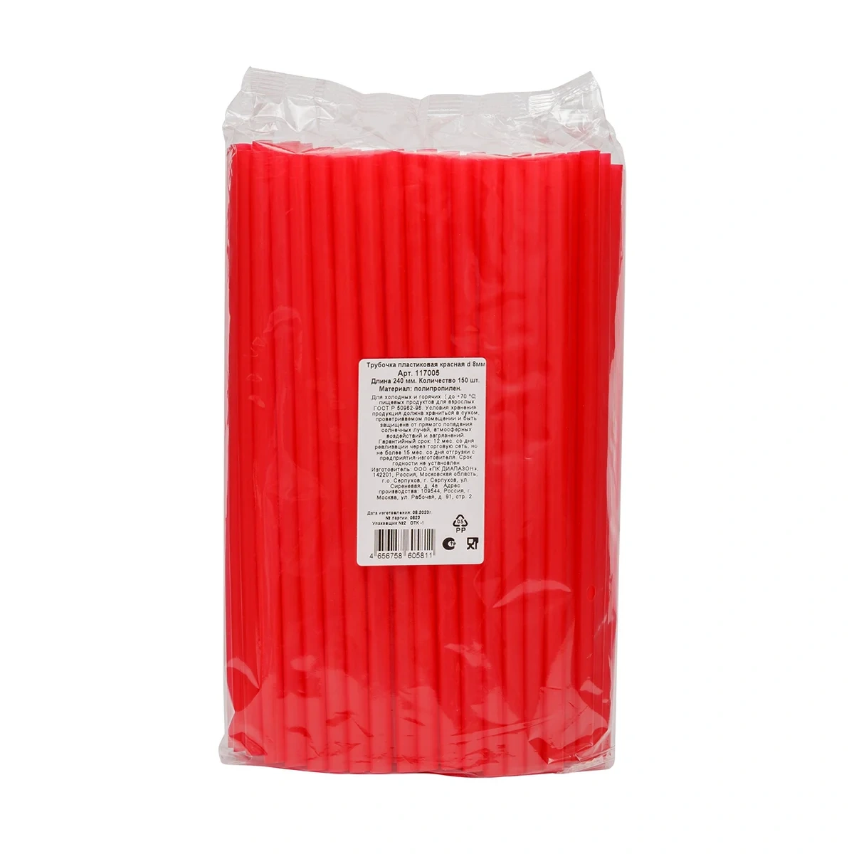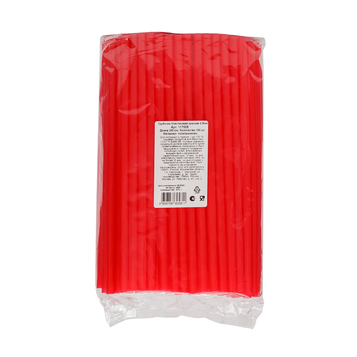 Трубочка для коктейля одноразовая пластиковая красная 24см, 150шт