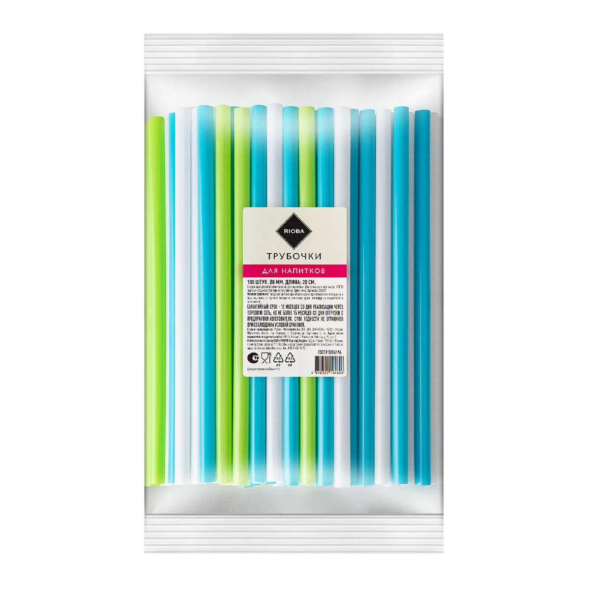 Трубочки для коктейлей Rioba 20см, микс цветов, 100шт