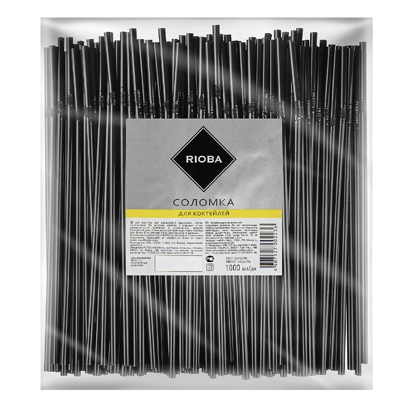 RIOBA Трубочка для коктейля одноразовая пластиковая черная в индивидуальной упаковке 24 х 8см, 250шт