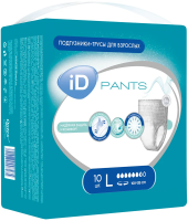 Трусы для взрослых Id pants размер L, 10шт - напоминают обычное белье, они идеально прилегают к телу, незаметны под одеждой и не стесняют движений. Это прекрасное решение для использования при средней и тяжелой степени недержания для людей, ведущих активный образ жизни. Они обеспечивают моментальное впитывание и удержание влаги, благодаря чему кожа остается сухой, отличную защиту от протеканий и блокирование неприятных запахов. Мягкие, как хлопок, материалы дарят ощущение комфорта.
