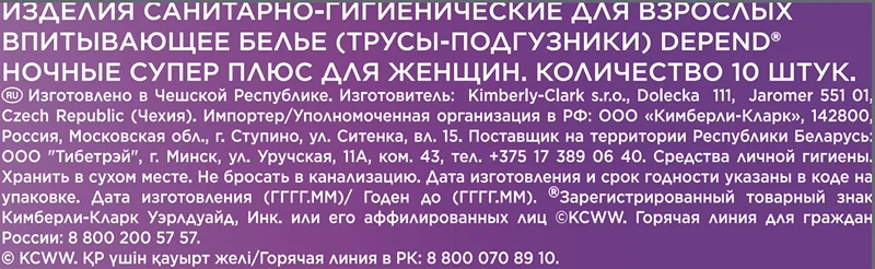 | Бренд | Depend |
