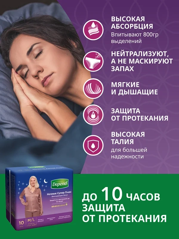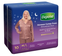 Трусы-подгузники женские Depend Super Plus ночные М\L, 10шт