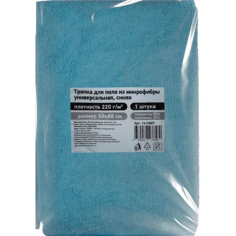 Тряпка для пола 50х80см, 220г/м2, микрофибра, синяя