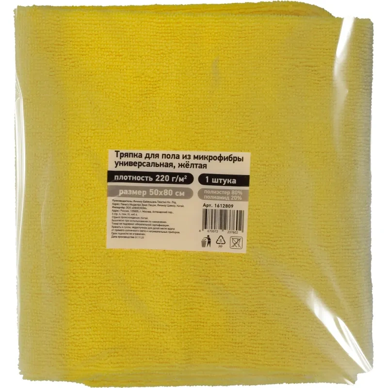 Тряпка для пола 50х80см, желтая, микрофибра, универсальная, 220г/м2